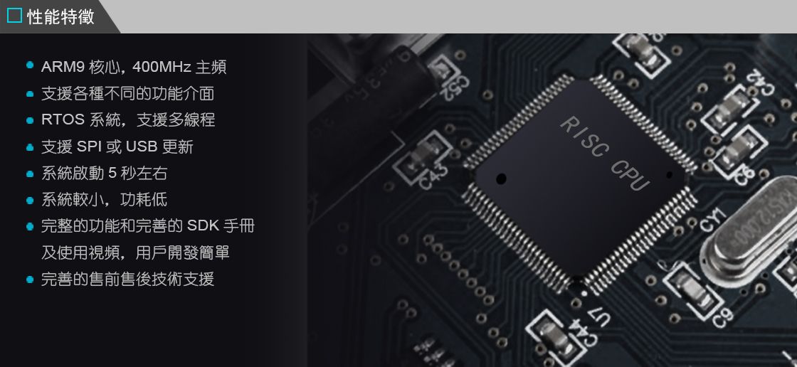 開機啟動時間少於10s 支援USB Card更新 支援完善的周邊SDK開發包 每個介面都有SDK包和調用實例